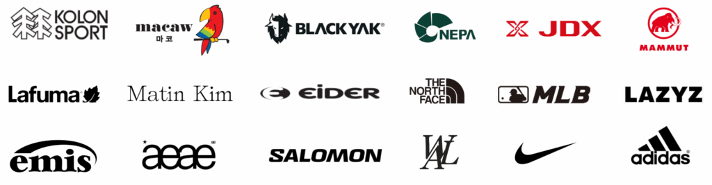 ※로고는 각 브랜드의 상표이며, 당사는 해당 브랜드의 일부 모자를 제작 진행하였습니다.